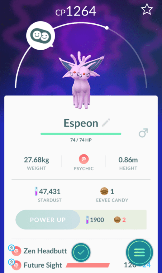 I’m quite proud of this Pokemon as it’s rarer than any shiny. That’s right, I’ve got myself a conjoined Eevee & Espeon. After finally getting enough candies, I was a bit hesitant to evolve him (them?). But I gave it a whirl to see what happens!