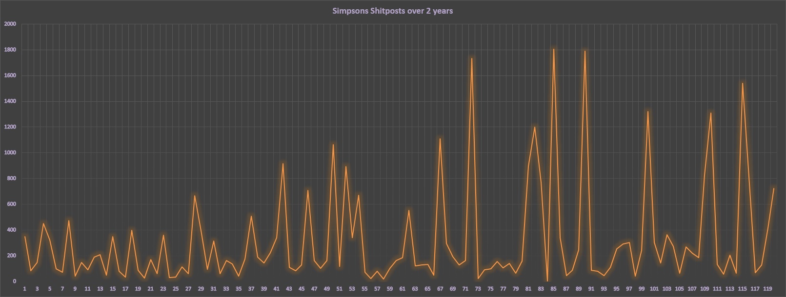 Much over the course of the second year of making Simpsons Shitposts has remained the same though, I still have not found any sort of formula for what works or what does not, which I again consider a good thing. I suppose the key change is I’ve spread to a new platform for posting them. I tried to see how I could post them on Instagram, but I was unable to find a satisfactory method and gave up. I revisited the idea by going with the slideshow method which seems to work. I’ve gained a bit of a following after a fair bit of likes. I’ve even seen some of the biggest Instagram Simpsons Shitposting accounts take some of my originals (probably ones from Reddit that got quite high upvotes though) and repost them of their accounts. Ultimately I don’t really care if they do, but I wish they would give me credit. Oh well.