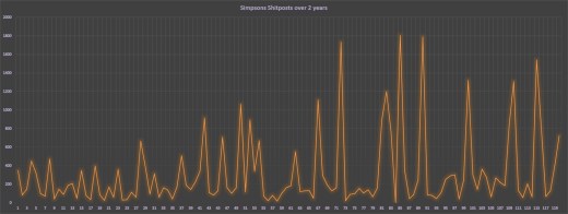 I can’t believe that February 2nd has passed and it has now been 2 full years of making Simpsons shitposts. Because I’ve got so many ideas bouncing around in my head, and MS paint is a god send, I found that most of this blog has now been overtaken by them. For that I am truly sorry. Last year I made a graph of what my Reddit net upvotes looked like out of curiosity, and did a bit of a write up on the subject of making them for one year. I’m not going to regurgitate that post but rather continue from there so I recommend reading that first post here if you’re interested on any sort of backstory.