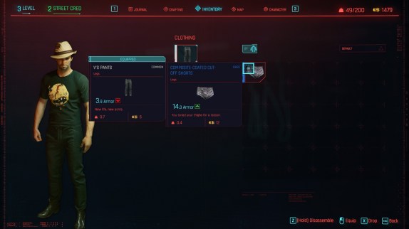 Just barely getting into Cyberpunk 2077, and while roaming around I ended up taking down some thugs. After looting their bodies, I noticed that I grabbed some pants. After comparing them, I noticed the armor rating was significantly better than my current pants. I reluctantly began wearing them…