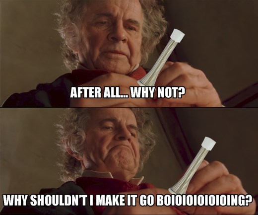 Childhood memories Posted on December 9, 2021 by Cubicle Coma Standard Just as tempting as holding onto the one ring to rule them all, so was the urge to gently kick a door stopper whenever I saw one. Just a thought when I saw this meme years ago. Share this: Click to share on X (Opens in new window) X Click to share on Facebook (Opens in new window) Facebook Like Loading...