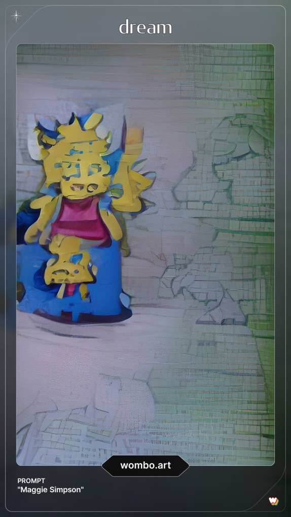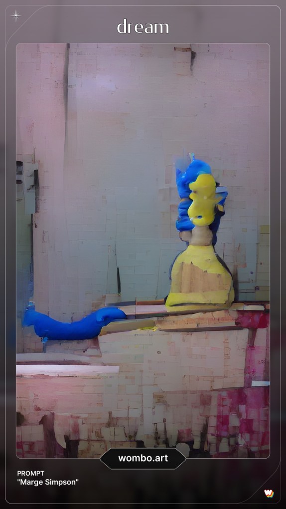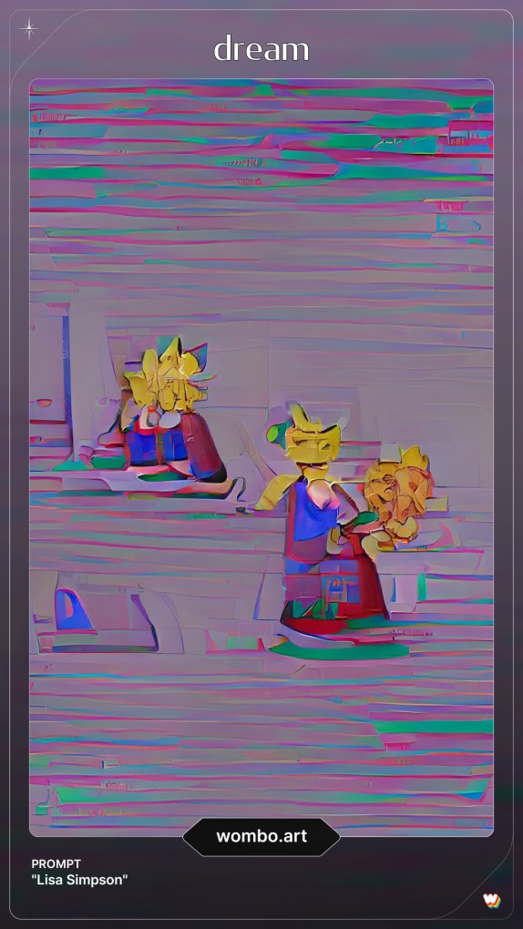 Out of boredom and curiosity, I decided to check out www.wombo.art and see what AI generated images might look like. I really couldn’t think of what to prompt it, so why not the Simpsons? The results were a bit… unwavering.