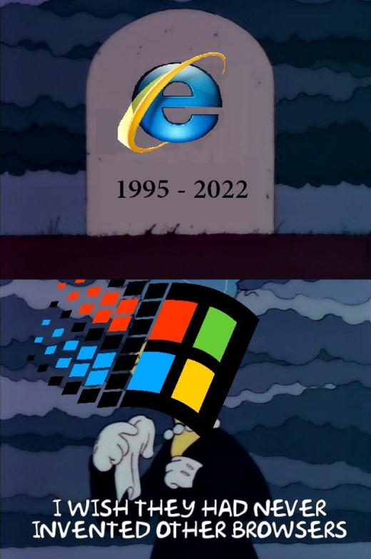 And IE joins the 27 Club Posted on June 16, 2022 by Cubicle Coma Image Share this: Click to share on X (Opens in new window) X Click to share on Facebook (Opens in new window) Facebook Like Loading...