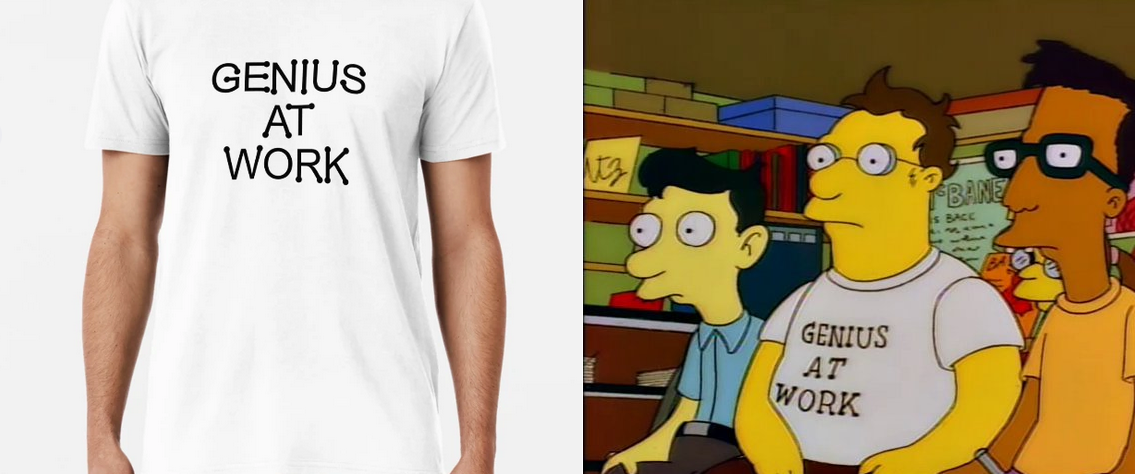 Ah the classic episode from season 8 episode 14 called “”The Itchy & Scratchy & Poochie Show”. From the golden era and contains so many great lines. In short Itchy & Scratchy show is dropping in ratings and they decide to add Poochie, voiced by Homer to the show and that does ultimately not work out. And how can forget how the Simpsons mirrored this by adding Roy living with them out of left field. When the voice actors are holding a conference and a nerd wearing this shirt is promptly put in his place.