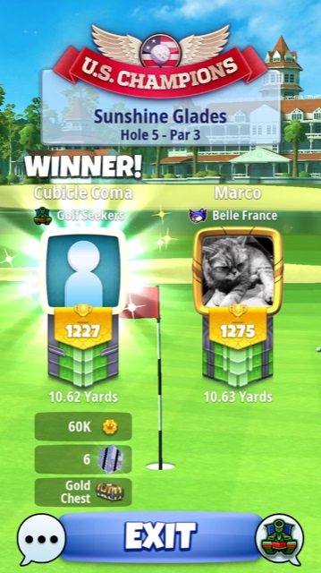 I’ve had some close calls during closest to the pin shootouts but this is the first time I won (or lost) by .01 of a yard. To put that into perspective, .01 yards is 0.9144cm (0.393701 inches) and a golf ball is about 4.3cm in diameter. So I was closer by less than a quarter of the width of a golf ball (about 21.265% closer). Crazy. Sorry Marco.