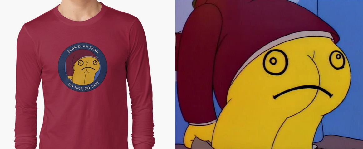 Season 7 episode 5 “Lisa the Vegetarian”. Can’t really recreate this item from the show, unless I actually roast a fat ass swine and launch it in the air. But the theme fits my shop so you can buy this design on various items.