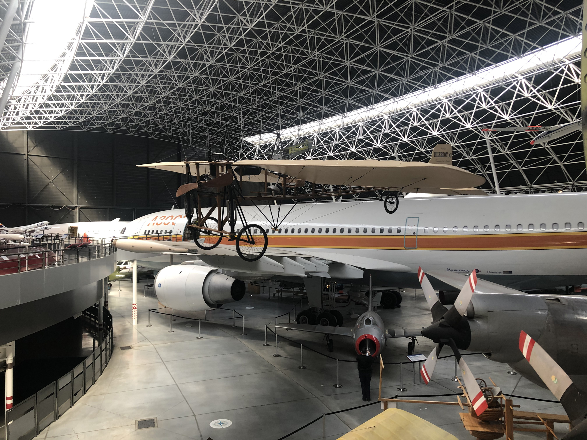 After the tour we headed into the museum to wander about. The older airplane seen here is the Bleriot XI (unsure of the variant) which was developed back in 1909. It’s famous for a few things, such as being the first airplane (balloons excluded) to cross the English Channel. It also was the first airplane to be used in a war (1910 in Africa by Italy), winning races such as the Circuit de l’Est and trophies such as the Gordon Bennett Trophy. When it won the Gordon Bennett Trophy in 1910, it also ended up setting a new air speed record too.