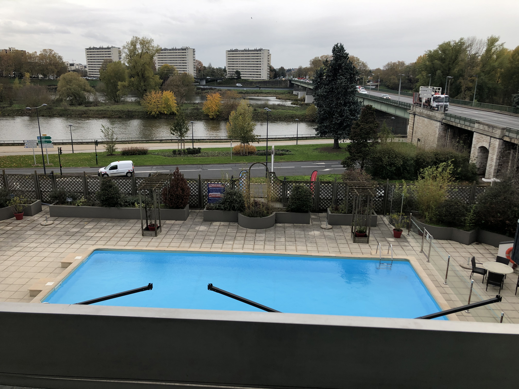 This was the very first picture I took in France after we stopped in Orléans (well, I guess you could count my picture of the Eiffel Tower from the airplane window but I won’t). It’s nothing fancy, just the view from my room’s balcony at the Hotel Mercure overlooking the Loire River. It looks a bit depressing, but to be fair it was overcast all day with some rain and it was late November with fall starting to set in. The pictures on Google Maps during the summer look much better.