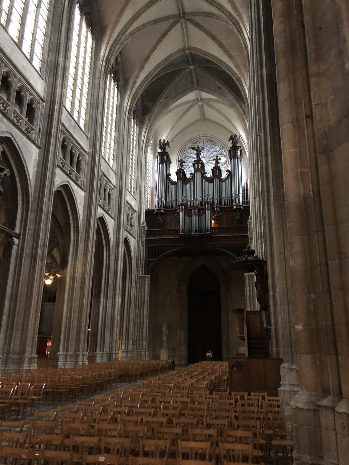 What massive Gothic cathedral would be complete without a massive pipe organ? The exquisite instrument that sits above was installed in 1846 by world renowned organ builder Cavaillé-Coll.