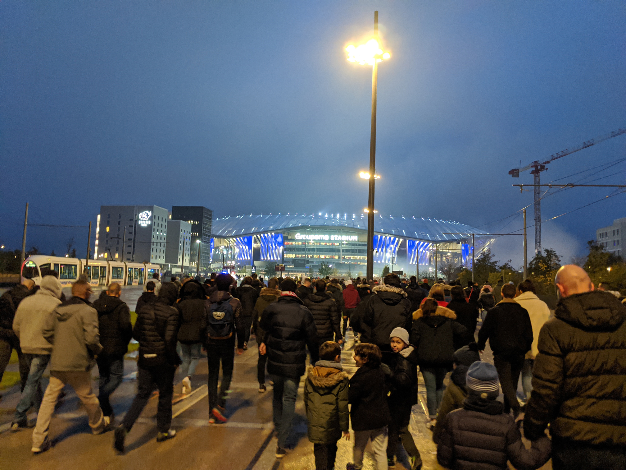 The Groupama Stadium can hold about 60,000 people and is home to Olympique Lyonnais, the Lyon soccer team in Ligue 1. Construction started in 2012 and the home team played their first game in January of 2016.