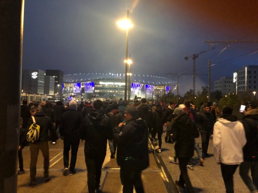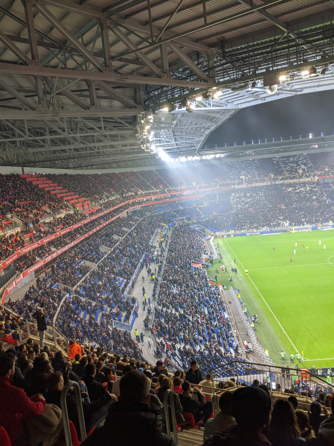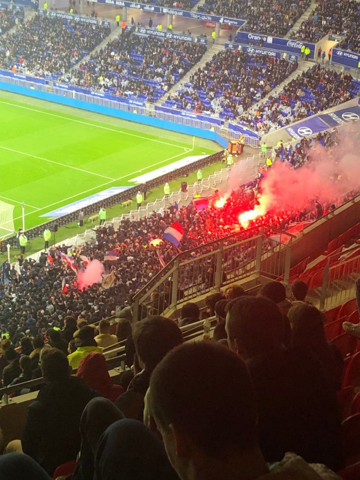 As Lyon was leading 1-0 in the half, they had a chance to nearly lock in their win with a penalty shot by Moussa Dembélé around the 25th minute. I decided to record it as I expected the stadium would erupt with cheers if he made the shot. My cellphone audio didn’t really capture the audio well enough but the crowd did go wild, even with the stadium only half full it was great to hear the celebration live.