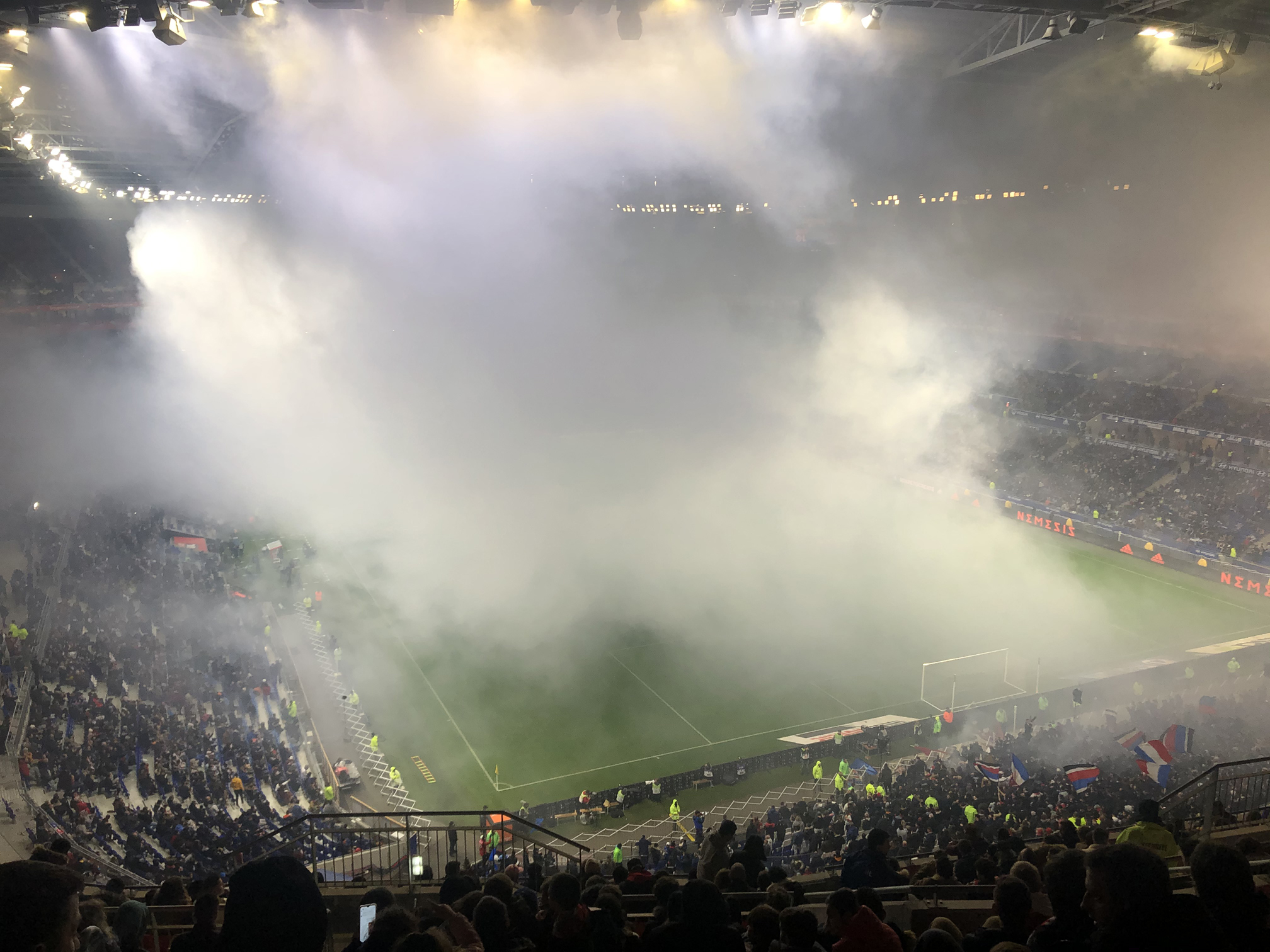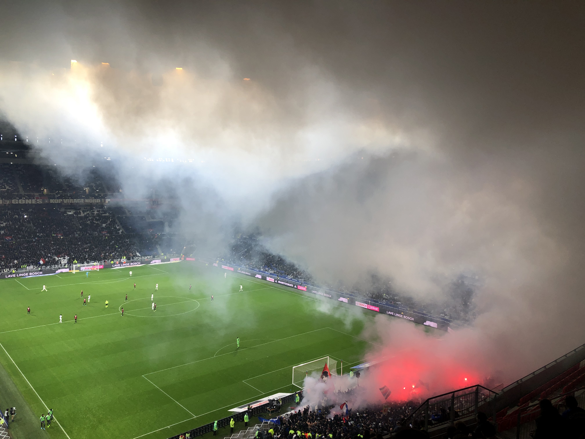 So much flares that the stadium started to fill up with some heavy smoke.