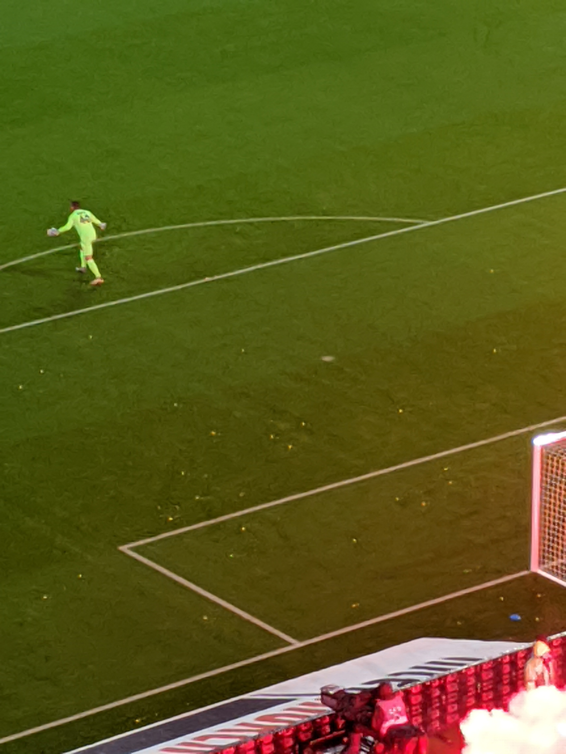 Here’s a little bit of a zoomed in picture of the Nice goalie. You can see a bunch of debris on the pitch that the Lyon hooligans threw at the keeper. No one looked to be bothered by this so I imagine it’s a fairly common occurrence.