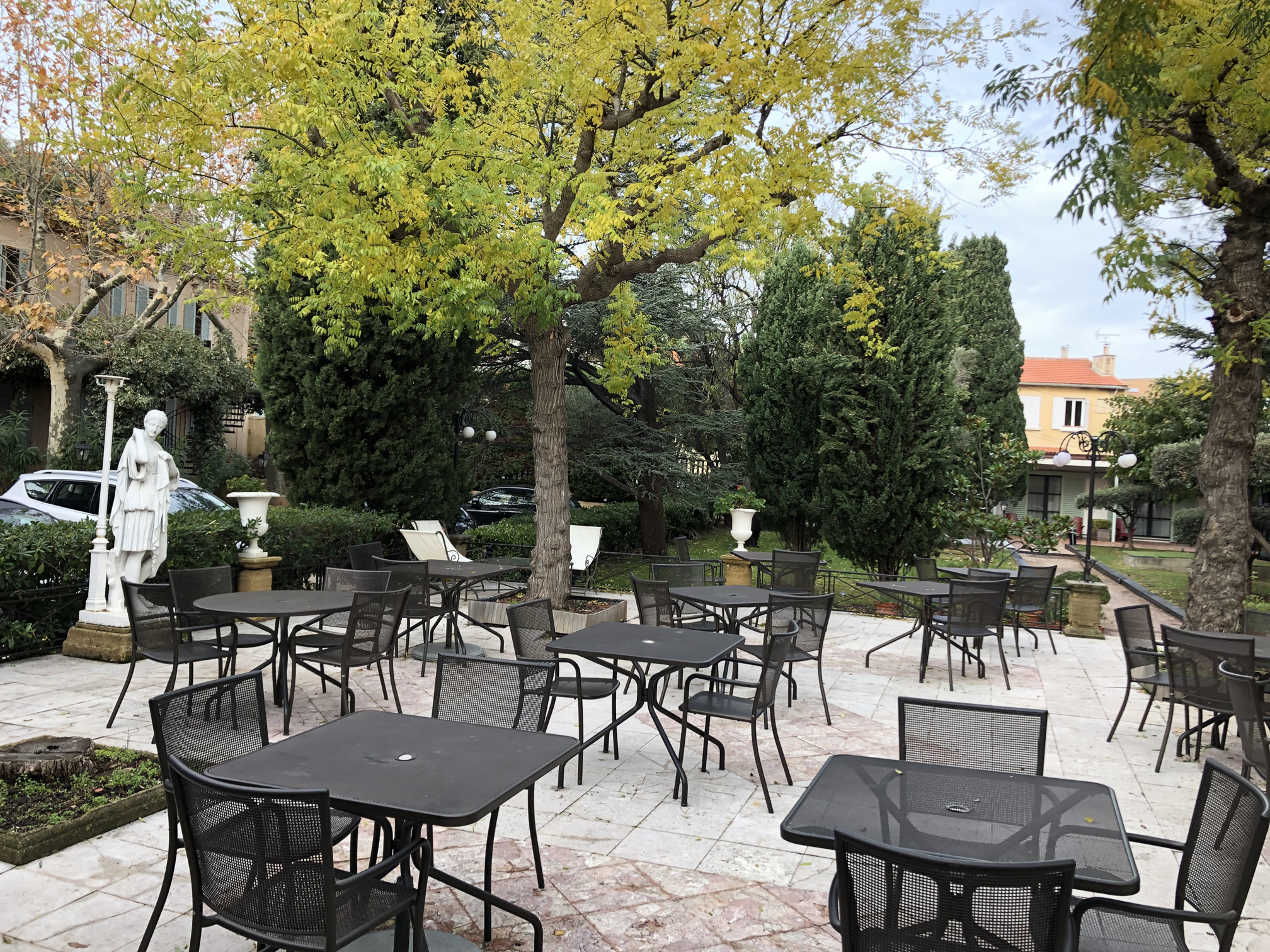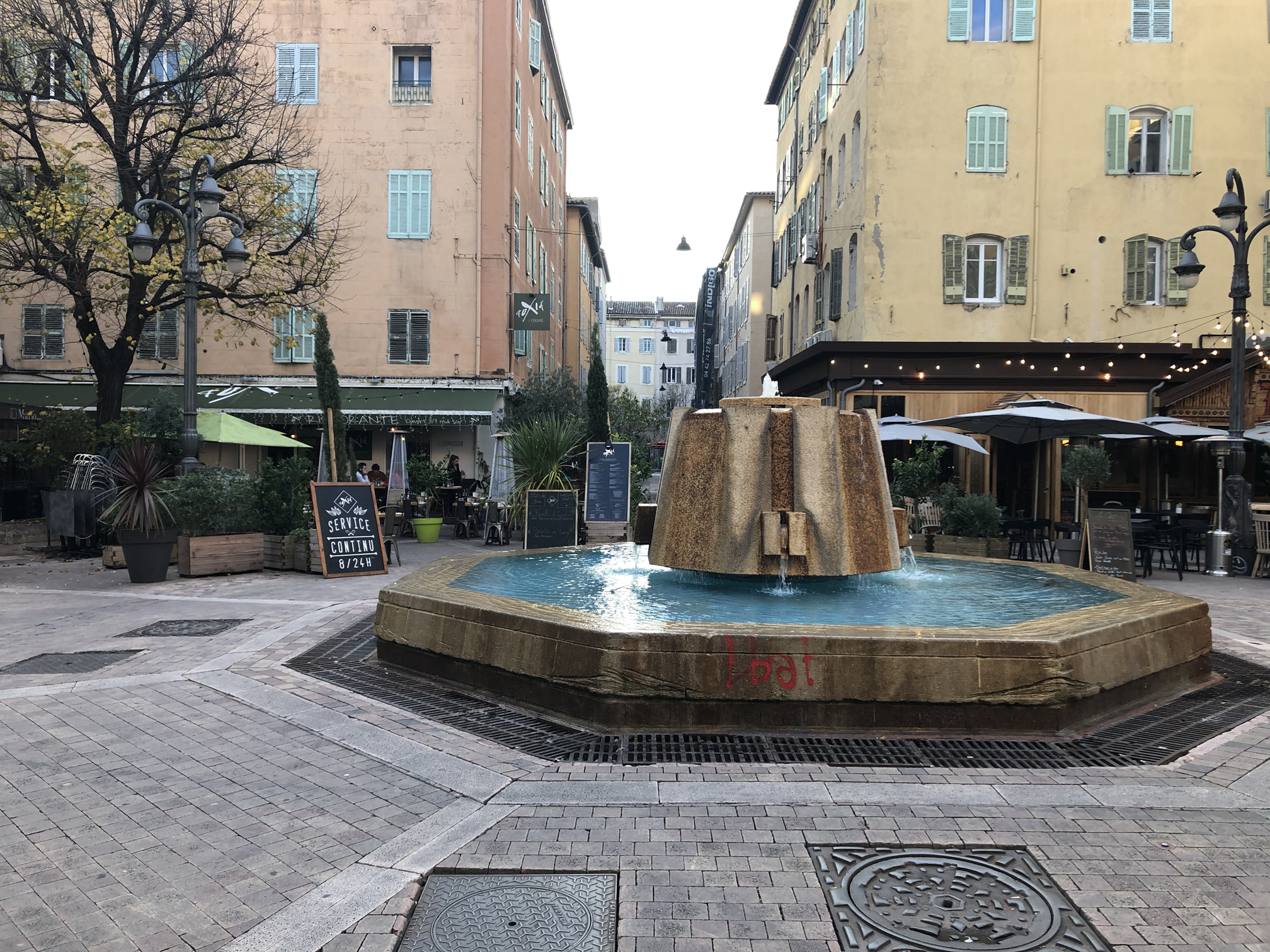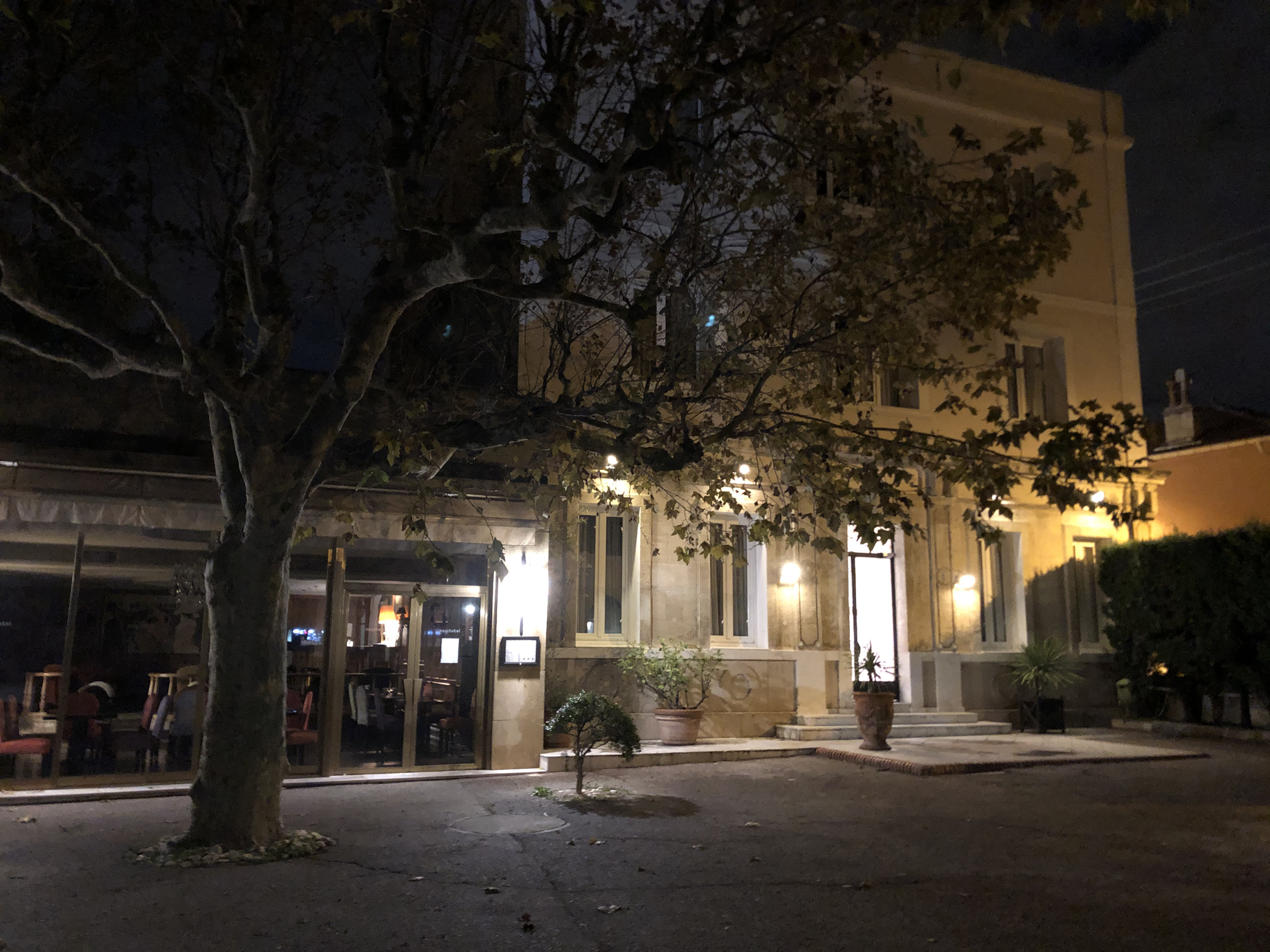 By the time we found our hotel the sun had set. Our hotel was a cozy little villa not too far from the coast and just around the corner from the Old Port. I tried to take a picture of the courtyard but the lighting at night in the area wasn’t that great.