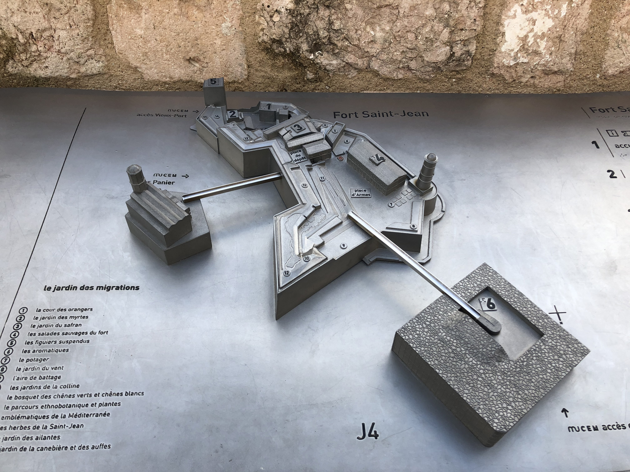 This model shows the fort connected by two bridges for visitors to cross. The one of the right side leads to the Museum of European and Mediterranean Civilisations, while the bridge on the left connects to the Le Panier neighborhood.
