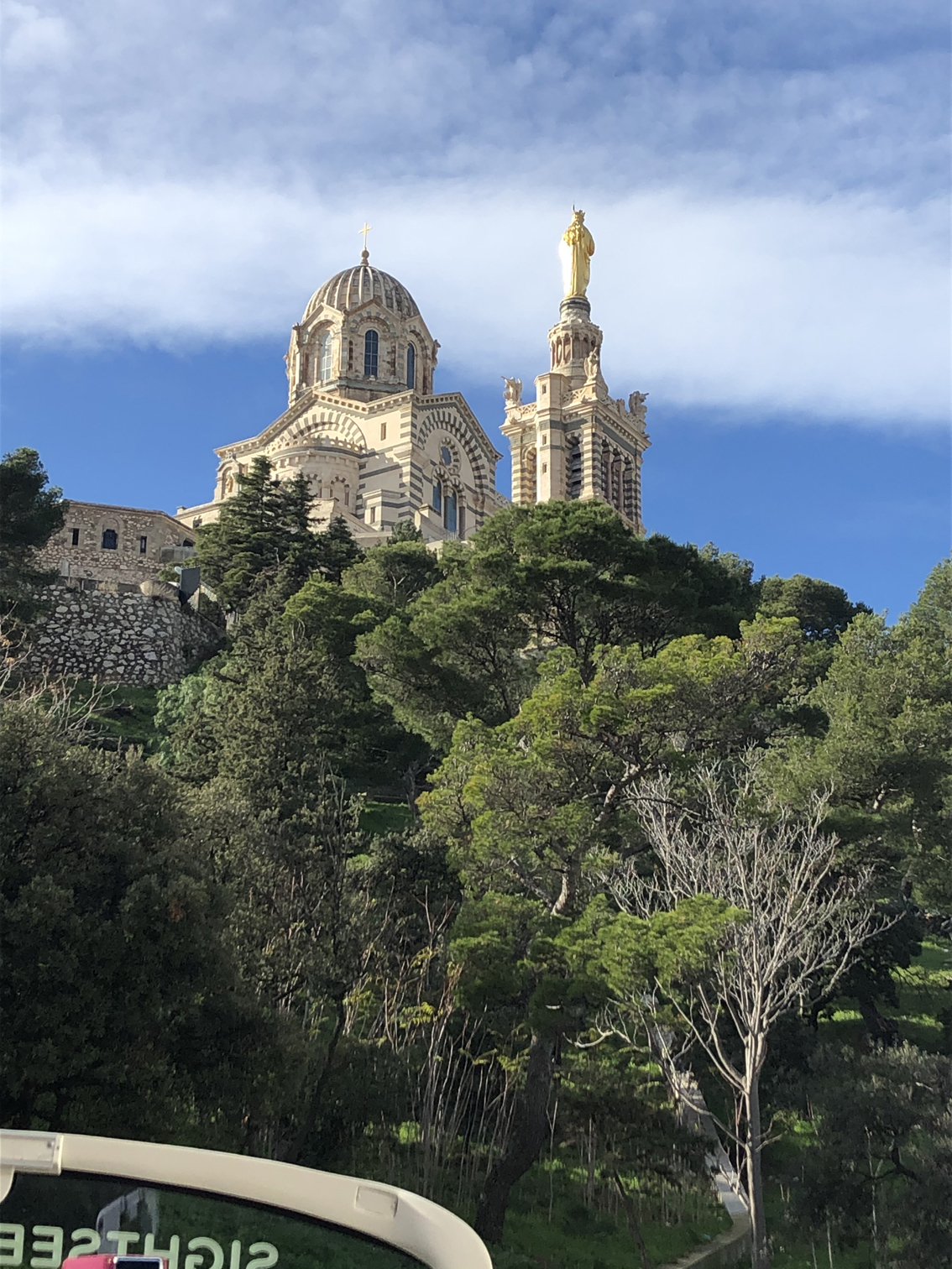 Notre-Dame de la Garde is seen here from the bus we were on. While it did make a stop up here (the church is built on the highest point in Marseille) we did not end up getting off and exploring it unfortunately. You can also see it in the distance in one of the above pictures from where we were standing in the Old Port.