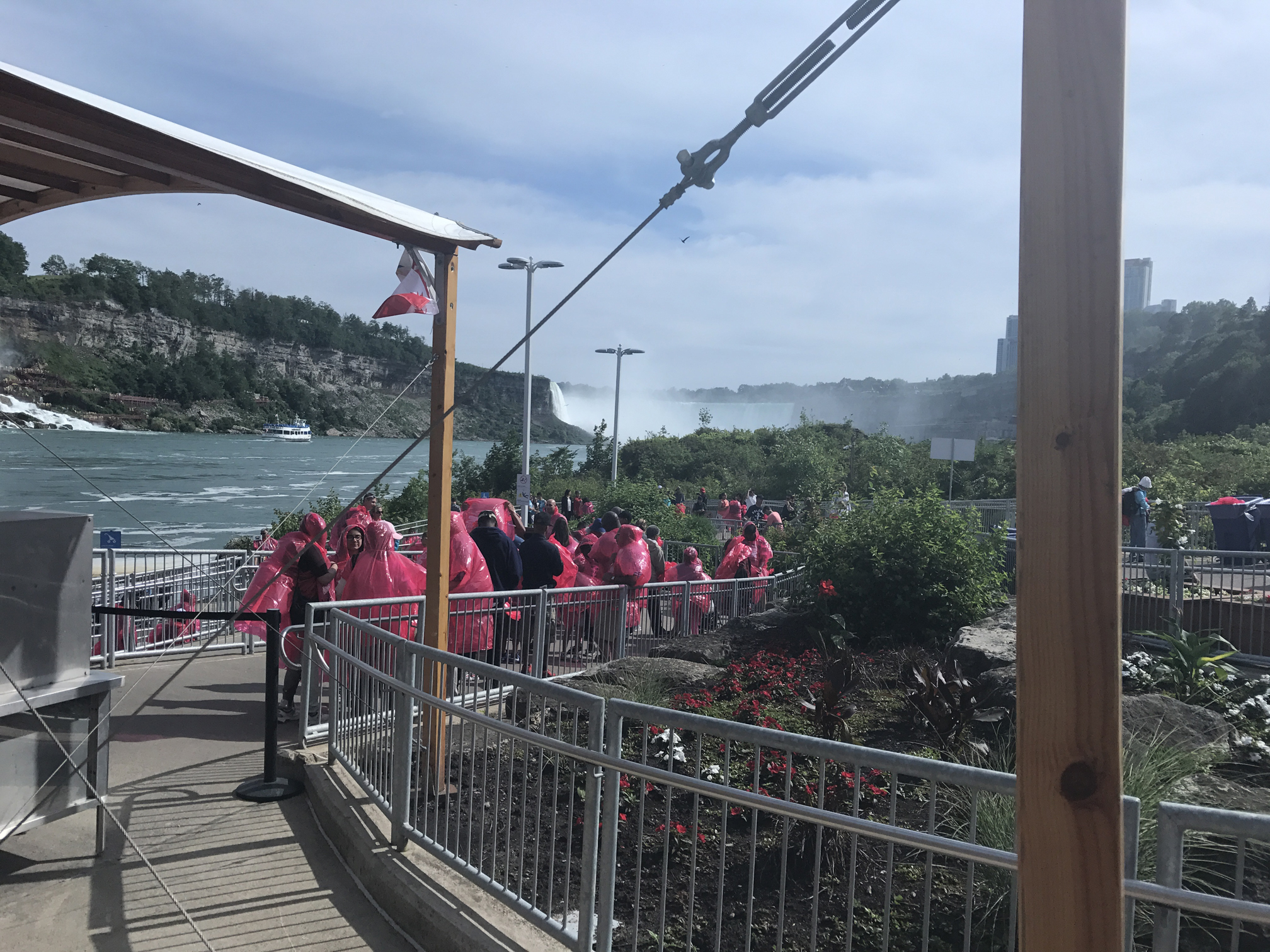 My friend and I decided it would be worth taking this ride as it was relatively inexpensive. So we hopped on and donned the light red raincoats we were given, which was essentially a red garbage bag with arm holes and a hood. On the American side they got blue ones.