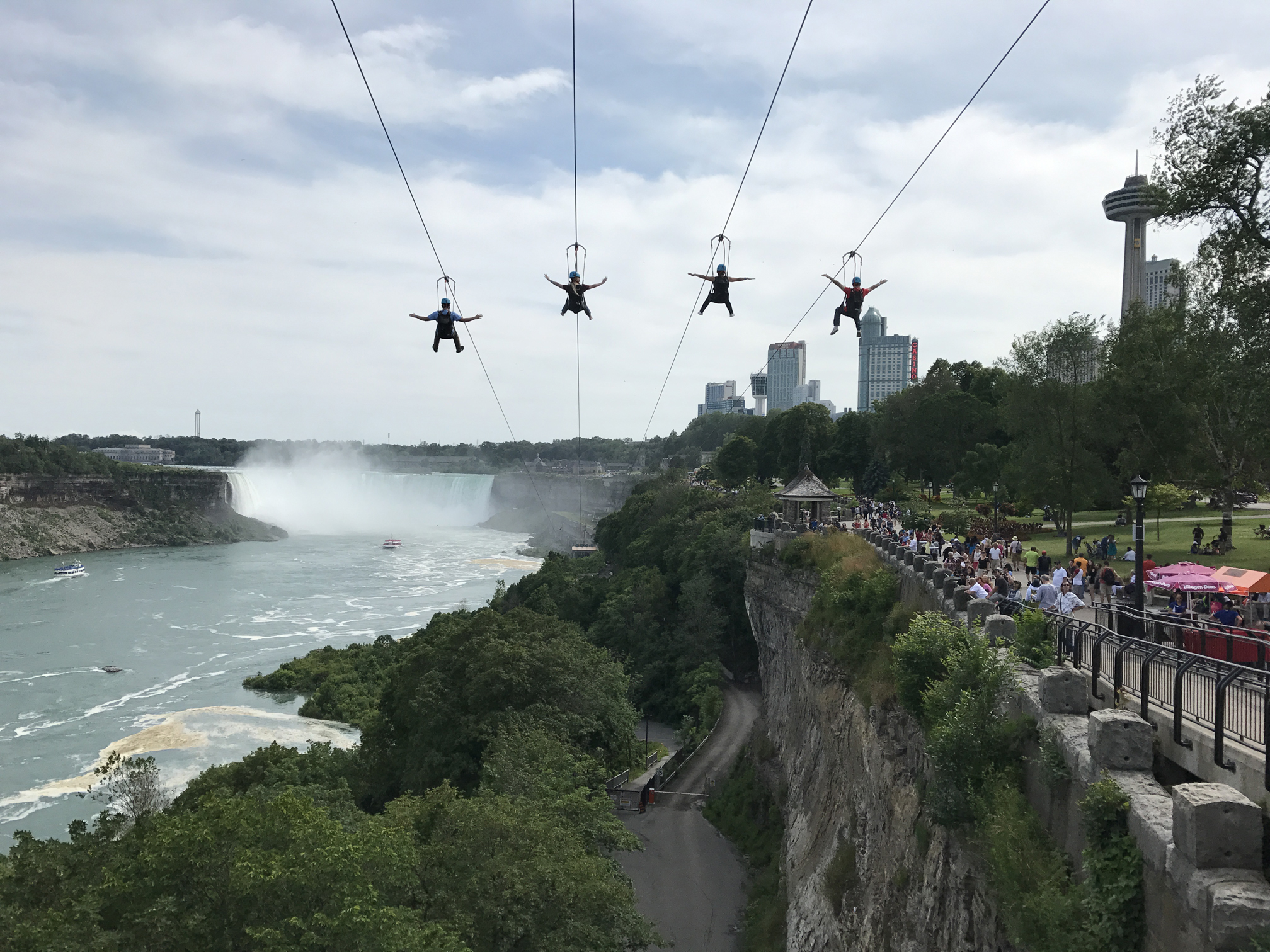 After we got back out of the falls we were soaked despite wearing our highly sophisticated water proof garbage bags. I tried to recommend that we do the zip line pictured here to dry off quicker, however my friend was not having any of it. So we found a grassy spot in a nearby park and laid under the warm sun to dry off for a bit before calling it and day and making the drive back to Toronto.