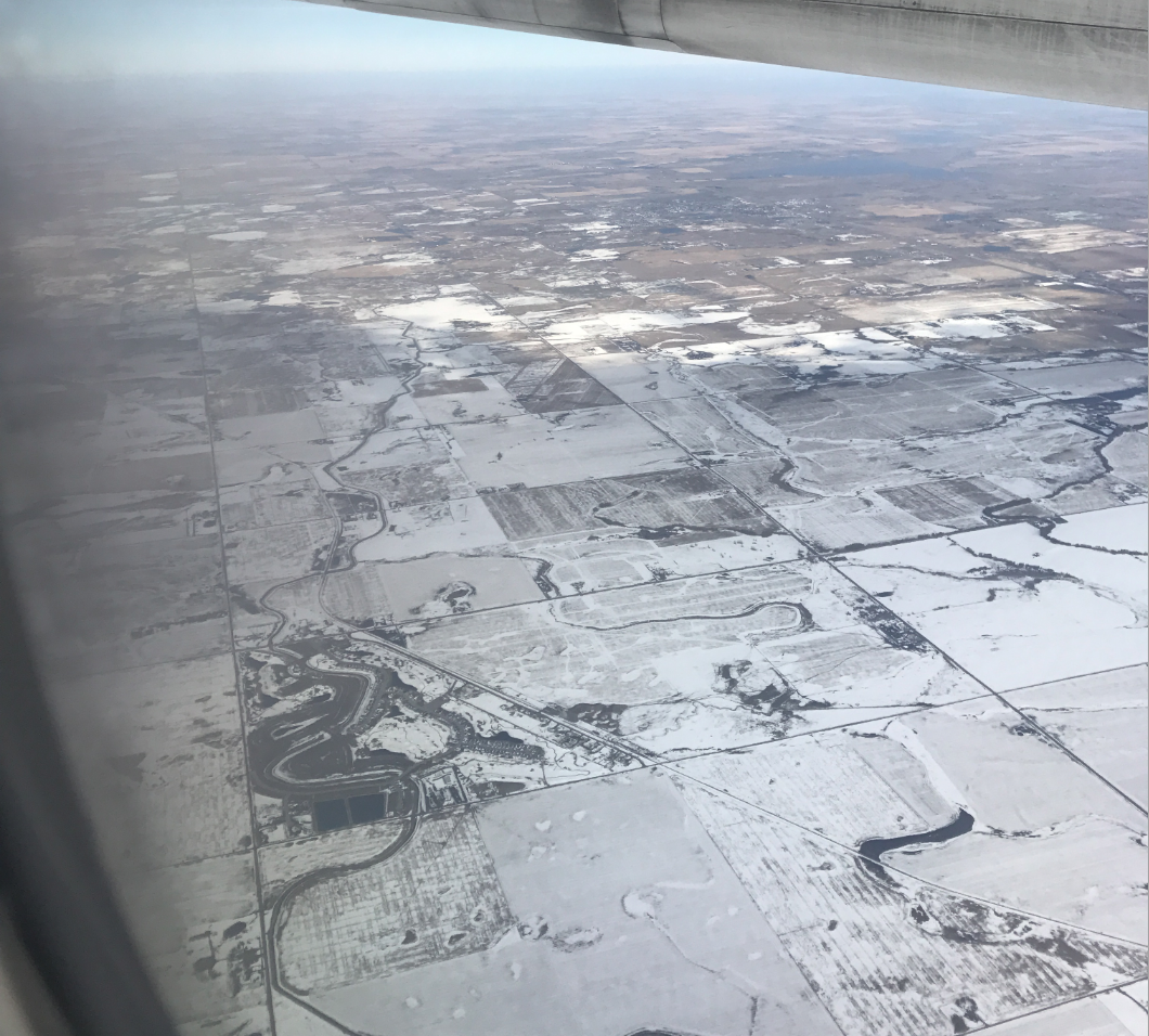 Recently I had to do a little bit of traveling for work. Nothing special about that, but this was the aerial view I was treated to on my way home. Recently a fairly large snowstorm whisked through western Canada and dumped about half a meter of snow. A few days later, while the temperature went back up to normal, the sheer amount of snow that dropped only began to melt. Upon liftoff I couldn’t help but take a picture because you can so vividly see where the storm began to die off. Pretty neat view when seen from above like this.